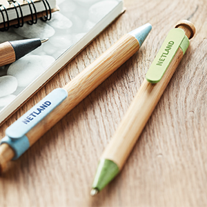 Un grande classico dei gadget aziendali sono le penne personalizzate che Zetad offre in una vasta gamma di modelli, tra cui segnaliamo, ad esempio, l'originale linea bamboo con stelo in legno, di varie forme.