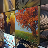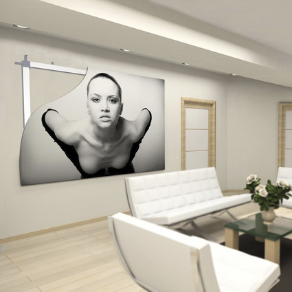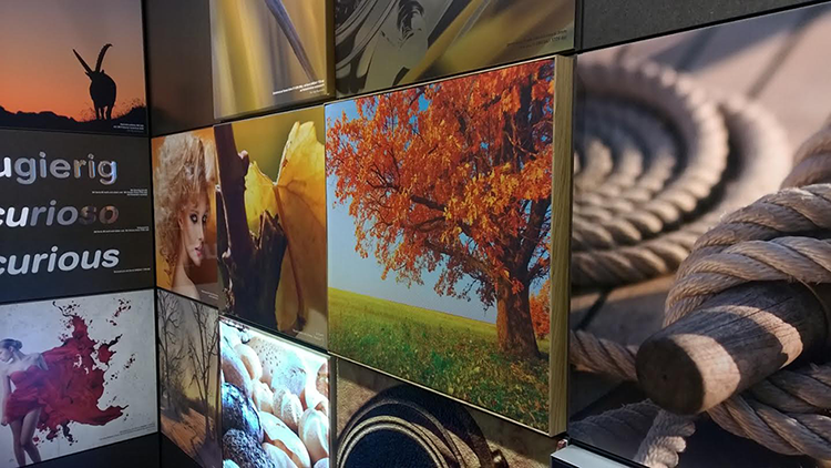 Adatte per gli interni possono essere affiancate per formare fondali continui, non essendoci una cornice esterna a interrompere la grafica, e possono essere dotate di retroilluminazione.
