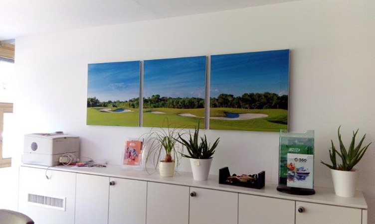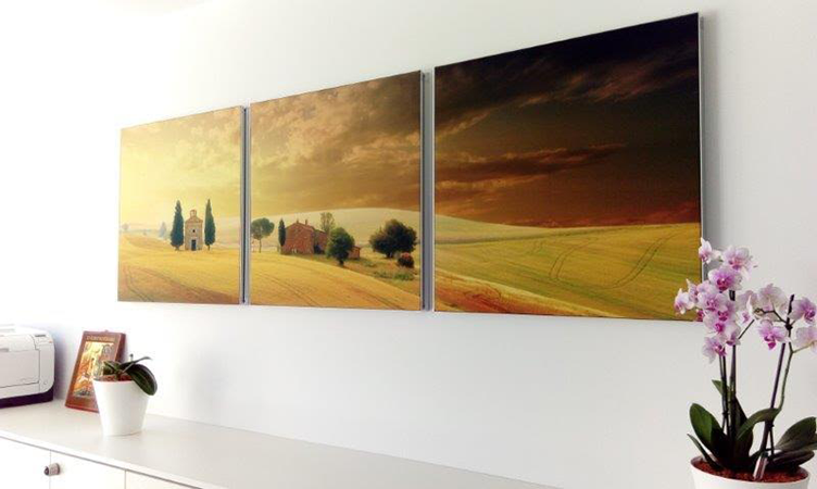 Le cornici Ector sono costituite da un pannello in finitura di alluminio anodizzato. La grafica è stampata su tessuto.
