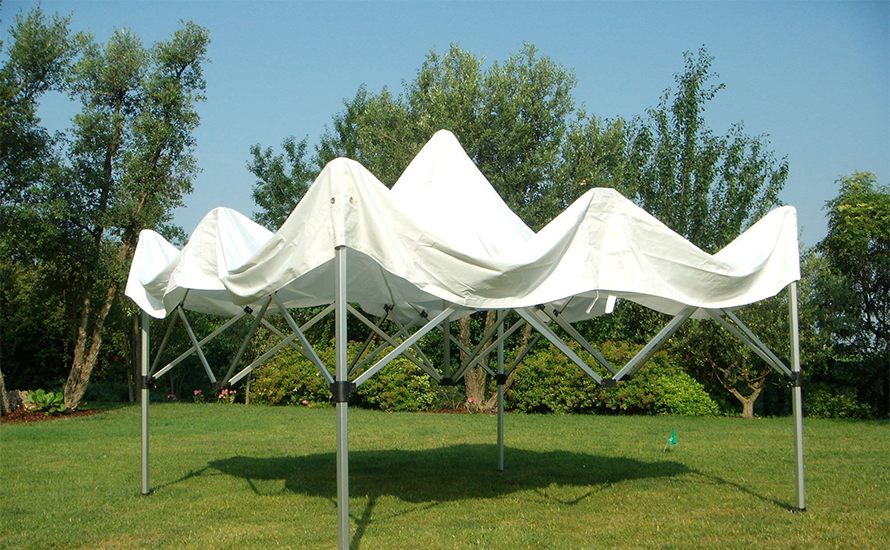 Il gazebo per fiere si apre in pochi minuti ed è sufficiente fissarlo al terreno.