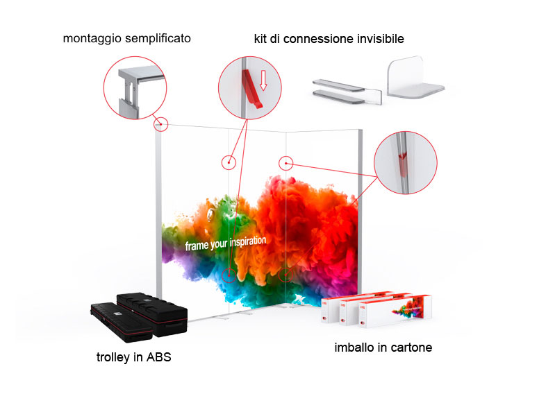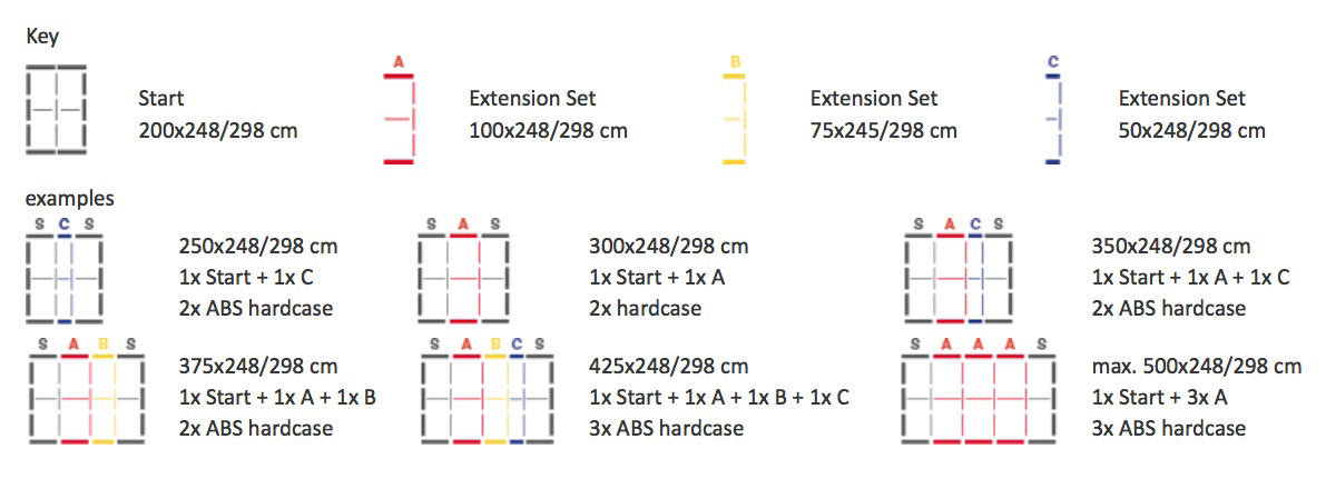 Tutto inizia da un modulo di partenza, da completare con i set di estensione disponibili in diverse larghezze (50, 75 e 100 centimetri) e altezze di 2,5 o 3 metri.