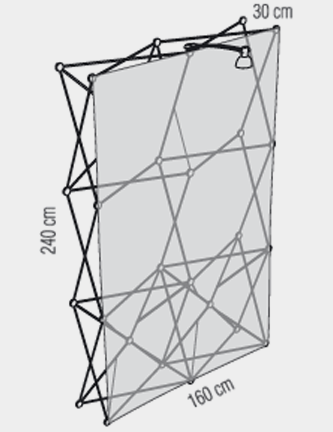 Parete pieghevole rettilinea sviluppo 160x240h cm composta da struttura pieghevole e pannello in tessuto.