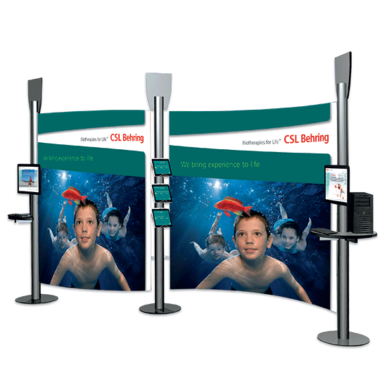 Per il vostro Stand Fiera potete costruire un kit su misura scegliendo tra diverse strutture stand ornamentali, festoni e piattaforme di appoggio.