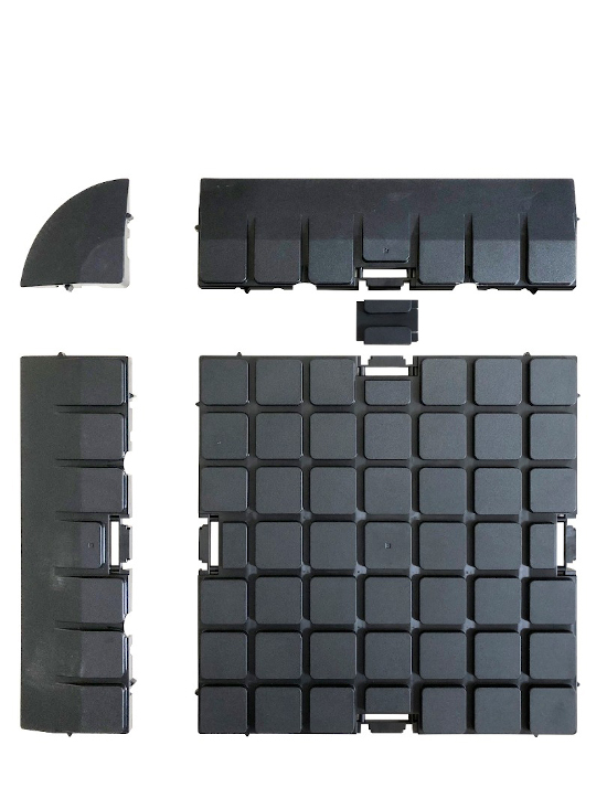 Essendo formato da quadrotte 50x50 cm, completamente intercambiabili e riposizionabili, ti permetterà, attraverso infinite combinazioni, di adattarti di volta in volta alle nuove esigenze: avere spazi diversi nelle varie fiere non sarà più un problema!
