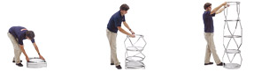 Basta sollevare la porzione in alto facendola ruotare: la struttura si allinea, i piani si stabilizzano.